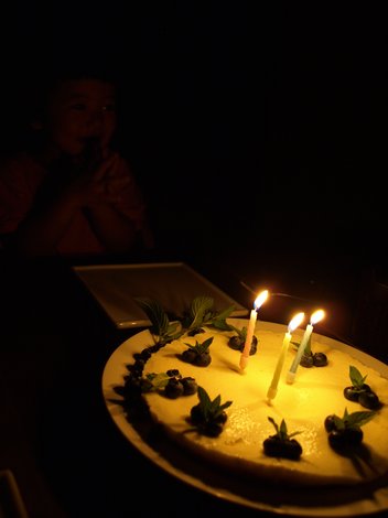 夜はケーキにロウソクをともして
