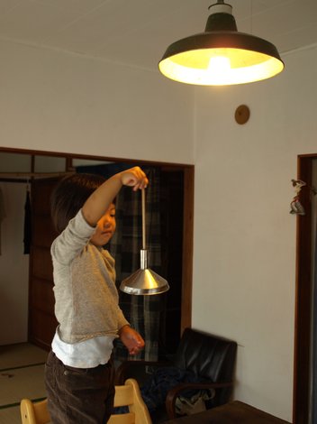 味のある古びたジョウゴがランプシェードになっていたっけ・・・。