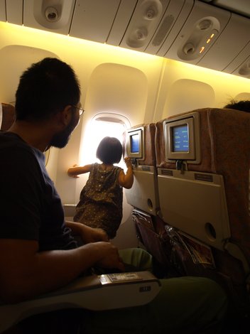 おまけの写真は飛行機の窓にへばりついてるちびっこ娘。