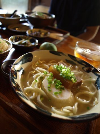 お湯で煮出してシークワァーサー(沖縄版スダチみたいな柑橘の果物)をキュッ。
