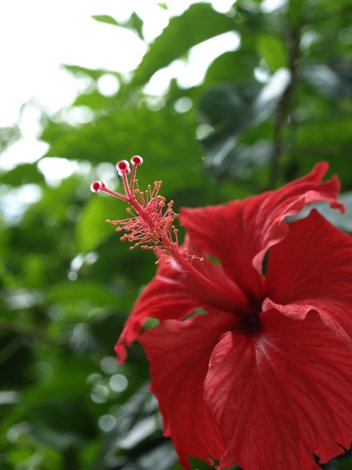 道端に咲くハイビスカスの花を摘んで持ち帰っては