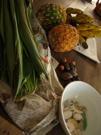 ヤギ飼いのおじさんところの島バナナ。これがとってもフルーティー。