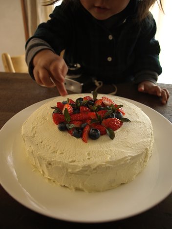 およばれのお土産にイチゴのバースデーケーキを焼きました。