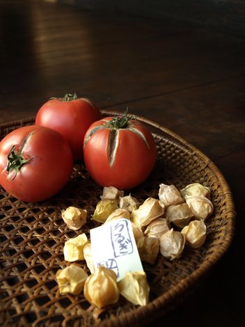 かわいい袋に包まれた 黄色いほおずき。(写真右下)