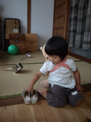 包まれていたのは お髭のじぃじにいただいた小さなサンダル。