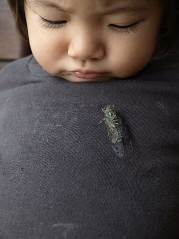 写真は夕方 庭先に迷い込んだミンミンゼミ