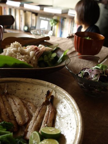 お芋ご飯に イワシのグリル