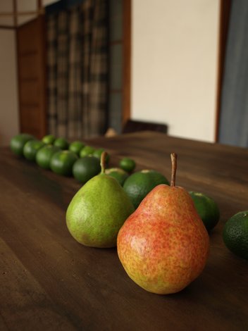きのうお土産にいただいた 洋ナシのカップルと