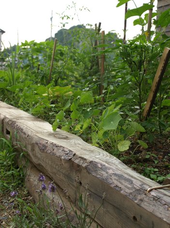 以前解体したお家の柱材を再利用し花壇のように