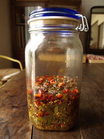 去年のトウガラシも刻んで