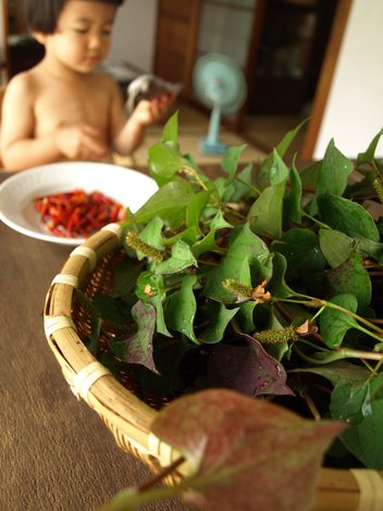 おナスもちびっこがころころと。キクイモもぐんぐん背を伸ばし。